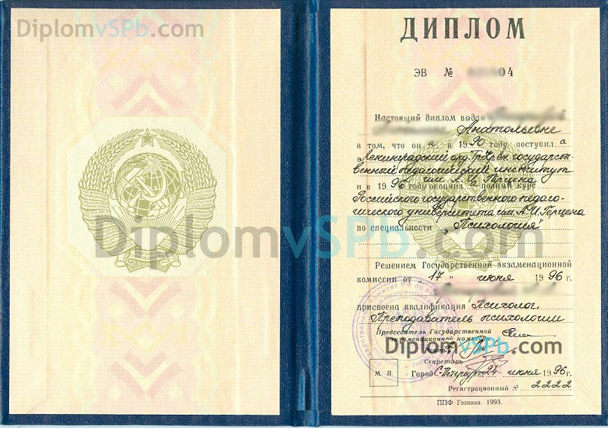 Важно! Дипломы до 1992-1993 года (в зависимости от учебного заведения) заверялись печатью с символикой СССР, после этого периода — печатью с символикой Российской Федерации (герб с двуглавым орлом).