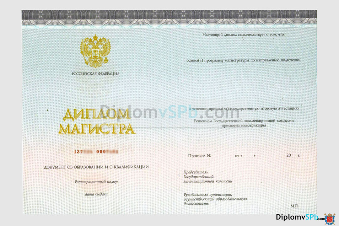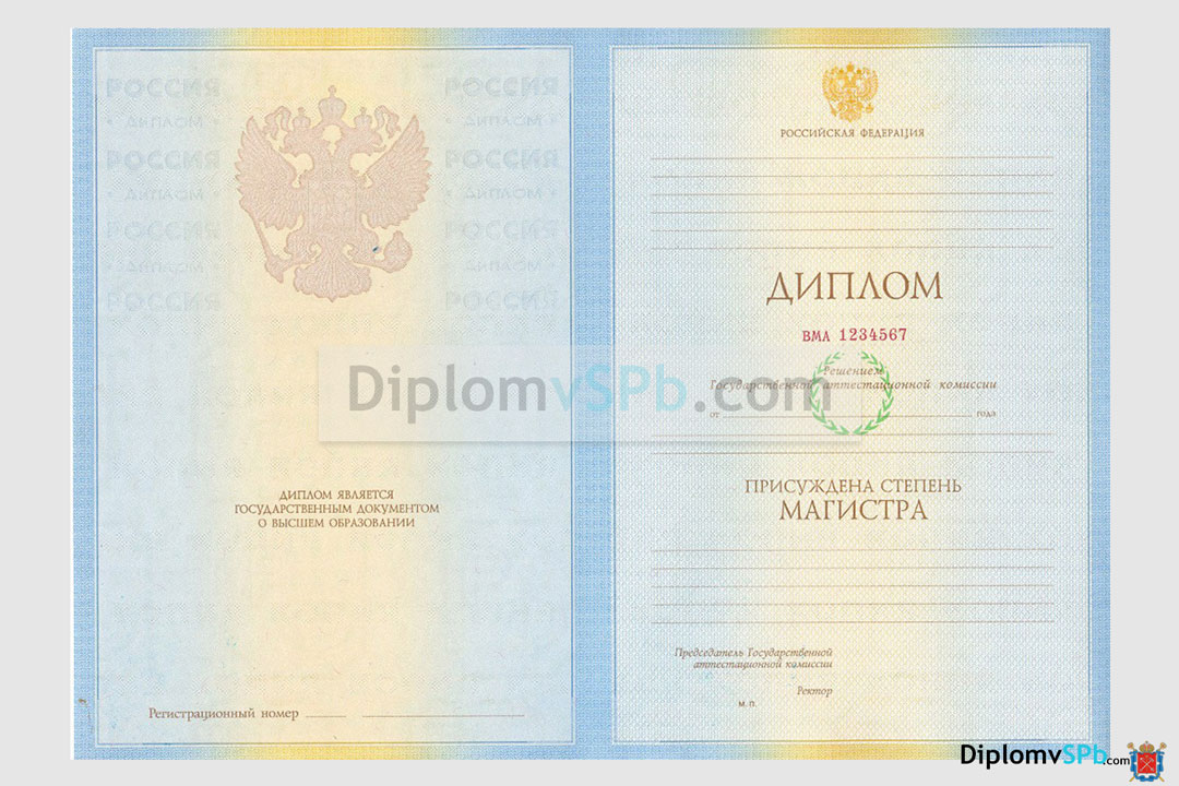 Магистр — академическая степень высшего образования, означающая, что ее обладатель прошёл углубленную подготовку по определённому профессиональному направлению. В дипломах в графе «квалификация» стоит запись вида «Магистр физики», «Магистр химии», «- геологии», «- политологии», «- социологии»  и прочее в зависимости от направления. Срок обучения — не менее 2 лет после специалитета или бакалавриата. На нашем сайте Вы можете купить диплом магистра государственного образца, выданный любым ВУЗом Санкт-Петербурга и других городов России. Гарантируем качественное, внимательное заполнение, доставку на следующий день, оплату при получении, соблюдение конфиденциальности.
